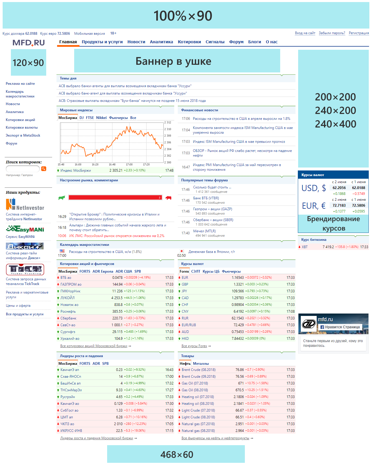 Возможно нестандартное размещение баннерной рекламы по заказу клиента с наценкой 1.5% от прайсовой стоимости.