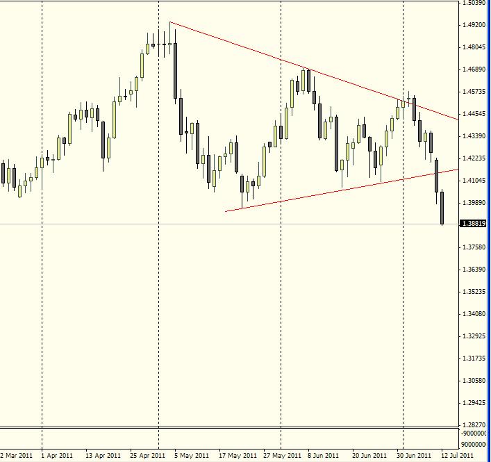 Как обычно сегодня два прогноза: от Константина Бочкарева и Николая Корженевского. Их идеи перекликаются с теми, что были высказаны в моем утреннем вью рынка. Согласен с Константином Бочкаревым, что очень много слухов, но не хватает конкретных сведений о том, что же там происходит. Особенно по поводу Италии: как говорят, п...ц подкрался незаметно. Почему эпизодический обвал CDS в пятницу вызвал столь оперативную реакцию со стороны высших чинов Евросоюза? Повышение ставки ЕЦБ в четверг оказалось здесь очень кстати. Трише наверно уже пожалел об этом ошибочном решении. .................................................................................................................. ФУНДАМЕНТАЛЬНЫЙ АНАЛИЗ ОТ КОНСТАНТИНА БОЧКАРЕВА С ADMIRAL MARKETS (11 ИЮЛЯ 2011 ГОДА) EUR/USD: Италия, Греция - SOS! Риски снижения курса EUR/USD ниже поддержки 1.40 в ближайшие месяцы все значительнее и значительнее возрастают в последнее время. Фактически, в понедельник утром можно говорить о том, что тема долгового кризиса в Европе получила существенное развитие. По крайне мере мы сейчас видим сразу две в чем-то новые идеи или «страшилки», которые могут заставить пару EUR/USD пробить вниз ценовой диапазон 1.40-1.46/1.47. Греция — все-таки дефолт?! Все идет к тому, что предложенный несколько недель назад французскими банками план рассрочки или «мягкой реструктуризации» греческого долга, который, кстати, считался в чем-то наименее болезненным, постепенно теряет свою актуальность и, судя по всему, не будет воплощен в жизнь. Так, сегодня в Брюсселе будет обсуждаться новый сценарий выхода из текущего долгового кризиса, который предполагает объявление дефолта Грецией по ряду своих долговых бумаг, чтобы в конечном счете снизить общий уровень греческого долга до приемлемого. Собственно, данного рода чаяния европейских лидеров можно загнать в формулу «...продавай EUR/USD на ожиданиях классического дефолта Греции...» Добавим, что данного рода слухи на рынке активно культивируются за счет ряда свежих публикаций в WSJ и FT, которые заметно повышают интерес к «коротким» позициям в EUR/USD. Италия — SOS?! Вторая не менее интересная история, которая посетила всех минувшим утром — это уже спекуляции на тему того, что и Италия может быть вовлечена в полной мере в текущий долговой кризис в Европе, поэтому пора задуматься в том числе и о ее спасении. В данном случае уже банально можно обратиться уже к публикации в немецком издании Die Welt о том, что для перестраховки и возможного предупреждения каких-либо кризисных явлений в Италии необходимо увеличить стабилизационный фонд в Европе вдвое до 1.5 трлн евро. Кто-то при этом обращает внимание еще и на то, что на обычную встречу президента ЕС и комиссионера ЕС были приглашены такие фигуры как глава ЕЦБ Жан-Клод Трише, ответственный за координацию усилий министров финансов Жан-Клод Юнкер и глава Еврокомиссии Олли Рен. Основная проблема для евро в данном случае банально сводится еще и к тому, что мы видим сейчас исключительно возможные сценарии развития событий в Европе, а также нелицеприятные для единой европейской валюты слухи, но при этом испытываем дефицит конкретики по данному вопросу. Причем многие сейчас понимают, что неопределенность вокруг ситуации в Греции может затянуться как минимум до сентября, что в конечном счете может быть куда большим риском для евро, чем сам дефолт. Добавим, что в текущей ситуации сам