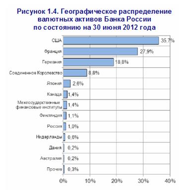 Обращает на себя внимание, что с точки зрения географического расположения на Францию приходится 27,9% валютных резервов России. Это означает, что не только значительная часть валютных резервов страны вложена во французские облигации, но и что во французских банках находится значительная часть (если не все!) депозитов и счетов ЦБ, номинированных в долларах США.
