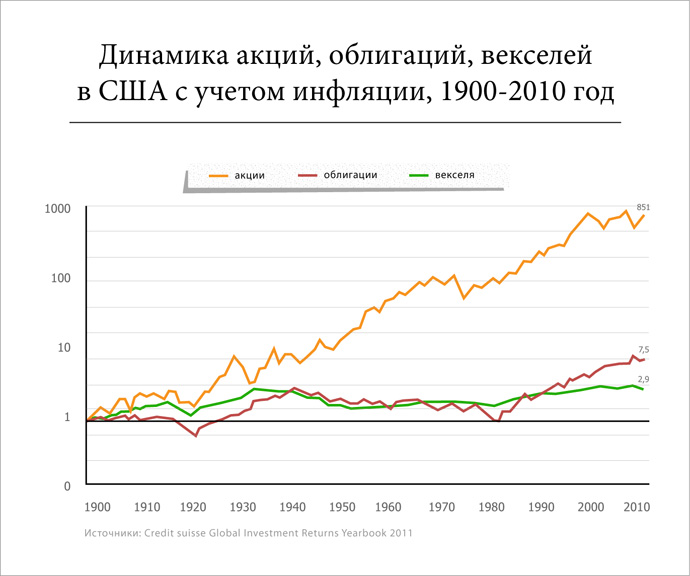 - Да. На рынке акций обращаются производительные активы, основанные на труде людей, поэтому у акций в долгосрочной перспективе положительное мат. ожидание. А на Forex происходит обмен валюты — непроизводительного актива, сильно подверженного инфляции
