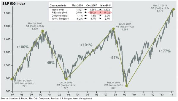 Это конечно далеко до P/E 25,6 в 2000 году. Однако два года без коррекции это много. Рост с минимумов 2009 года уже приближается в отметке 177%. Хотя некоторые аналитики видят признаки коррекции.