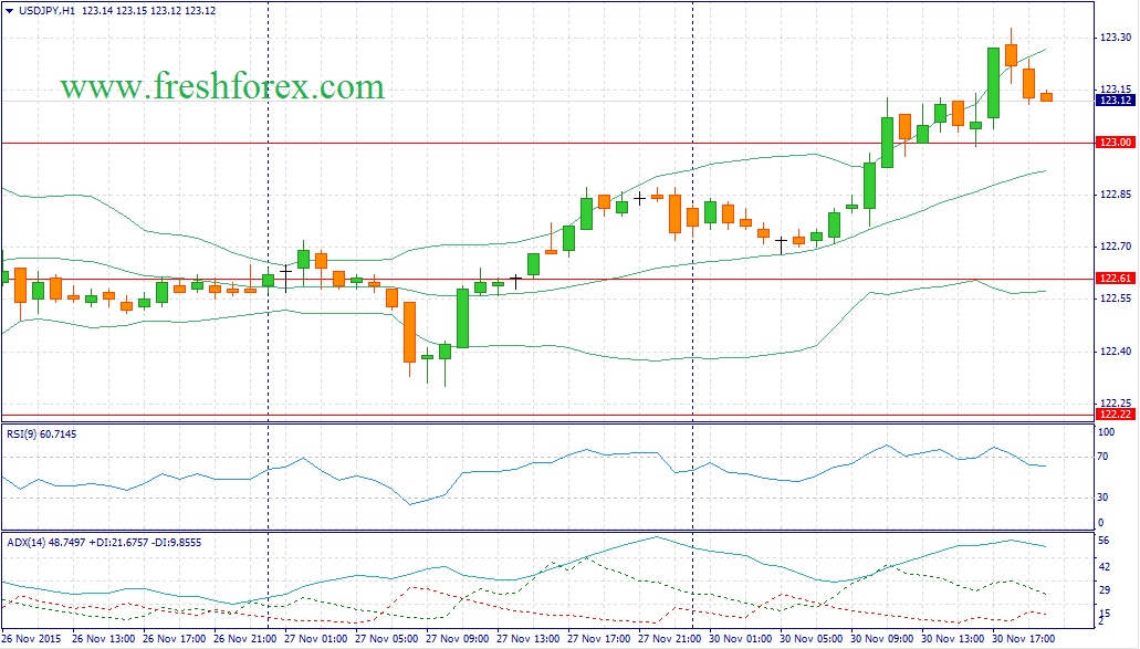 В первой половине дня следует ожидать преобладания бычьих настроений на фоне позитивной динамики долгового рынка. Два последних торговых дня дифференциал доходности государственных облигаций США и Японии расширялся, что увеличивает привлекательность инвестиций в американские активы, и тем самым будет поддерживать спрос на доллар. Однако на сильный рост котировок сегодня рассчитывать не стоит по двум причинам. Во-первых, индекс долларовой корзины (USDX) сейчас находится в области максимальных значений текущего года и с учетом того, что на вторую половину недели запланирована публикация целого блока важнейшей макроэкономической статистики участники рынка будет воздерживаться от активной торговли, занимая выжидательную позицию. Во-вторых, как было отмечено ранее, в американскую торговую сессию можно ожидать выхода данных по индексу ISM производственного сектора хуже медианы прогнозов, что будет сдерживать “быков” от дальнейшего наступления. На этом фоне в первой половине дня следует открывать позиции Buy на снижение котировок в область 122.95/122.65 и фиксировать прибыль на отметке 123.35. Необходимо выделить следующие уровни: уровни поддержки: уровни поддержки: 123.00 – 122.61 и уровни сопротивления: 123.60 – 124.12.