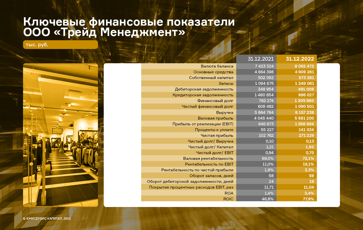 Владелец сети модных магазинов lady & gentleman CITY — ООО «Трейд Менеджмент» — завершил 2022 год с положительным результатом. В компании отмечают значительный рост по ключевым показателям. Эмитент смог сохранить своих поставщиков, нарастить товарооборот, обеспечить бесперебойную логистику и заметно укрепить позиции бренда после ухода ряда мировых производителей с отечественного рынка.