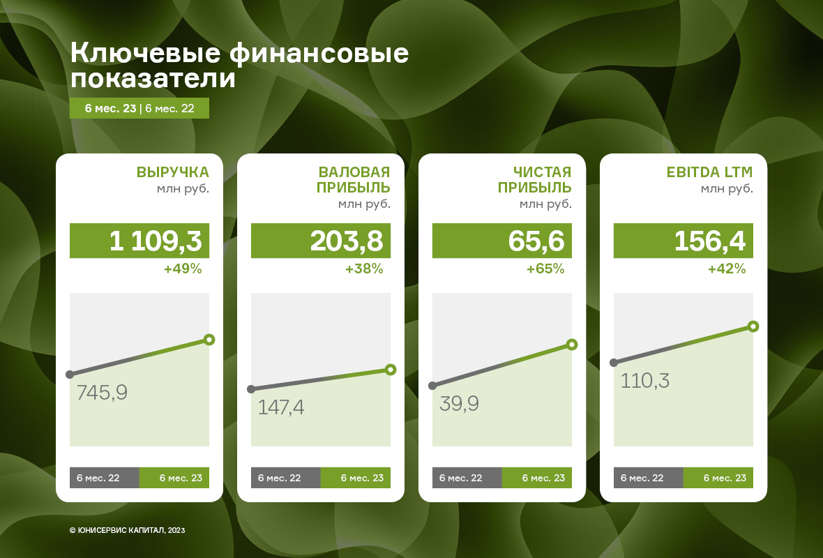 За 6 месяцев 2023 года ООО «СЕЛЛ-Сервис» увеличило показатель выручки на 48,7% относительно АППГ до 1 109,3 млн руб. Рост валовой и чистой прибылей составил 38,2% и 64,6% соответственно за те же сравниваемые периоды. Причины позитивной динамики — рост объемов продаж и ослабление курса рубля.