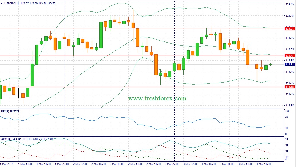 В первой половине дня ход торгов будет определяться настроениями на фондовом рынке. Опубликованные накануне данные по занятости в сфере услуг от ISM разочаровали инвесторов и вызвали снижение доходности краткосрочных американских казначейских облигаций. Данный фактор в свою очередь может поддержать спрос на фондовом рынке, что будет оказывать давление на японскую йену, как валюту фондирования. Наличие спроса на “рисковые активы” подтверждает также рост котировок акций самых проблемных европейских банков: Deutsche Bank, Societe Generale и Credit Agricole. В этой связи, до открытия торгов в США можно ожидать умеренного роста котировок пары USD/JPY. Как было отмечено ранее, в 16.30 мск. в первую очередь следует обратить внимание на отчет по среднему заработку, который является важным инфляционным индикатором. В случае выхода позитивных данных – доллар может продолжить своё восхождение наверх, в противном случае нас ожидает откат. На этом фоне, в течение дня следует открывать позиции Buy на снижение котировок в область 113.20/112.90 и фиксировать прибыль на отметке 113.85.