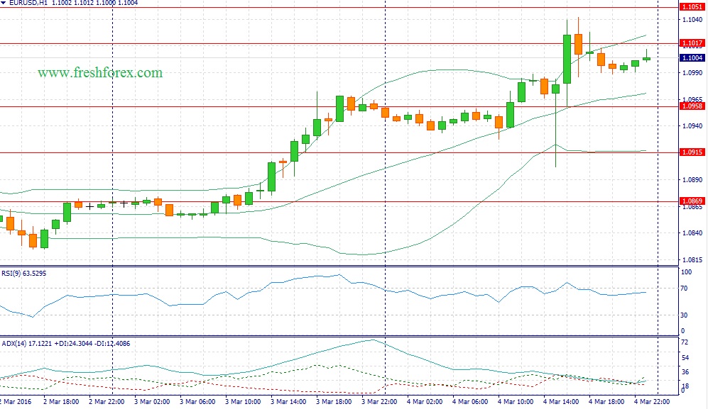Опубликованный в минувшую пятницу релиз по рынку труда в США нельзя назвать однозначным. С одной стороны, занятость в частном секторе увеличилась на 242 тыс., превысив ожидания участников рынка. Однако, если смотреть на двухмесячный срез и сравнить полученные данные с минувшем годом, то мы увидим сокращение темпа роста занятости на 14,81%. Разочаровал и показатель среднего заработка, который сократился на 0.1%. Нельзя обойти стороной и слабые данные по торговому балансу США за январь – отрицательное сальдо составило 45,6 млрд. долларов, что на 4,53% большем, чем годом ранее. В этой связи, можно сделать вывод о том, что ФРС США на своем заседании 16 марта не будет ужесточать кредитно-денежную политику. Восходящий тренд на американском рынке акций также подтверждает этот сценарий – индекс S&P 500 в пятницу завершил торги уверенным ростом котировок. Инвесторы не верят в повышение ставок со стороны FOMC и наращивают длинные позиции. Сегодня не ожидается важной макроэкономической статистики и в этой связи, ход торгов в основной валютной паре будет определяться динамикой долгового и фондового рынков. На кредитных рынках доходность немецких 10-летних государственных облигаций снижается по отношению к своим аналогам из США, что уменьшает привлекательность инвестиций в европейские активы. На фондовых площадках наблюдается рост бычьих настроений, что является негативным фактором для евро, как валюты фондирования. На этом фоне, в течение дня следует открывать позиции Sell на росте котировок в область 1.1050/1.1085 и фиксировать прибыль на отметке 1.1000.
