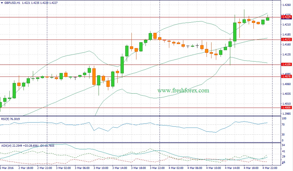 Несмотря на мощный рост котировок “черного золота” в пятницу (сорт Brent по итогам дня потяжелел на 5%) темп роста британской валюты в последний торговый день недели замедлился, что может сигнализировать о том, что инвесторы начинают постепенно фиксировать прибыль по длинным позициям. Долговой рынок также указывает на возможную коррекцию в паре GBP/USD: по итогам минувшей торговой недели спрэд доходности 10-летних государственных облигаций США и Великобритании расширился на 5,1 б.п., при этом британская валюта за этот период укрепилась к доллару на 2,66%. Нельзя обойти стороной и динамику показателей деловой активности в секторе услуг: дифференциал PMI по итогам февраля сместился в пользу Соединенных Штатов, что также лишает быков по британской валюте козырей. Месяцем ранее напротив, дифференциал показателей был в пользу Соединенного Королевства. Сфера услуг в данном случае выбрана вовсе не случайно – именно этот сектор составляет основу ВВП обеих экономик. На этом фоне, в течение дня следует открывать позиции Sell на росте котировок в область 1.4250/1.4285 и фиксировать прибыль на отметке 1.4195.