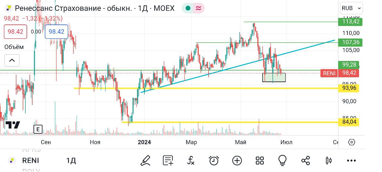 🥜Сейчас цена подходит к перспективной зоне. Спекулятивный профит на который можно рассчитывать, это диапазон 100-107р.