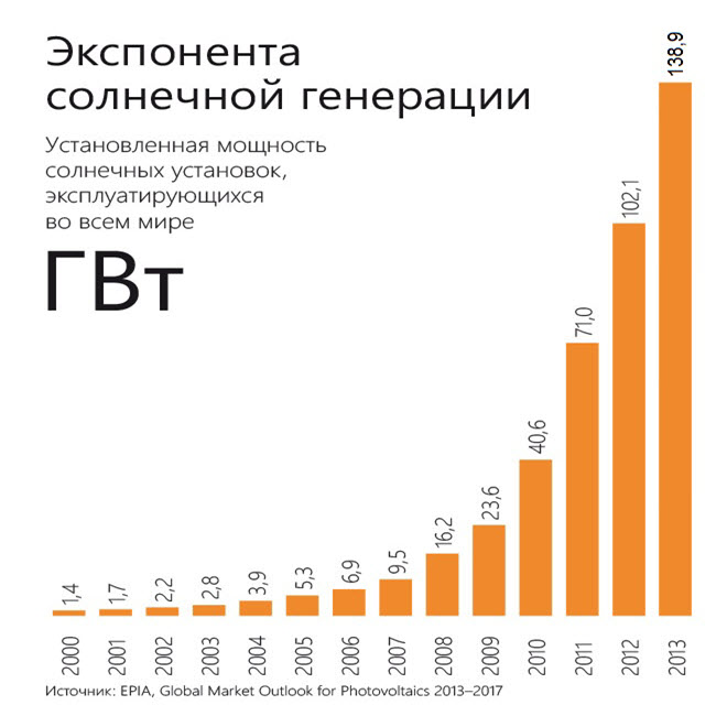 На данном этапе, рынок солнечной энергетики развивается семимильными шагами, к сожалению, свежих данных за последние годы не нашел, но есть любопытные данные за период до 2013: