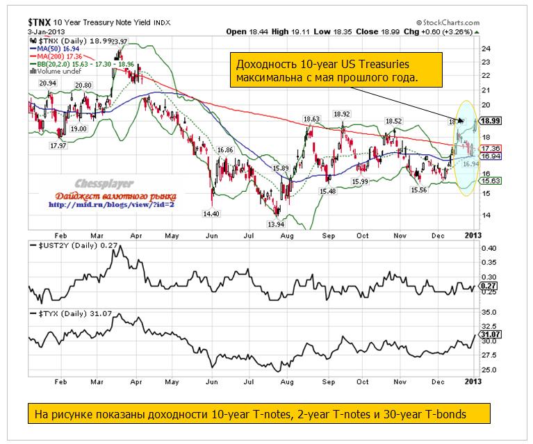 Доходность 10-year US Treasuries максимальна с мая прошлого года.