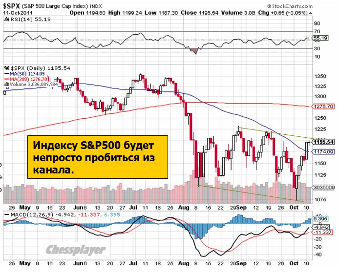 Если смотреть на техническую картину индекса S&P500, то неожиданно вырисовался нисходящий канал, верхняя граница которого проходит примерно на уровне 1205 пунктов.