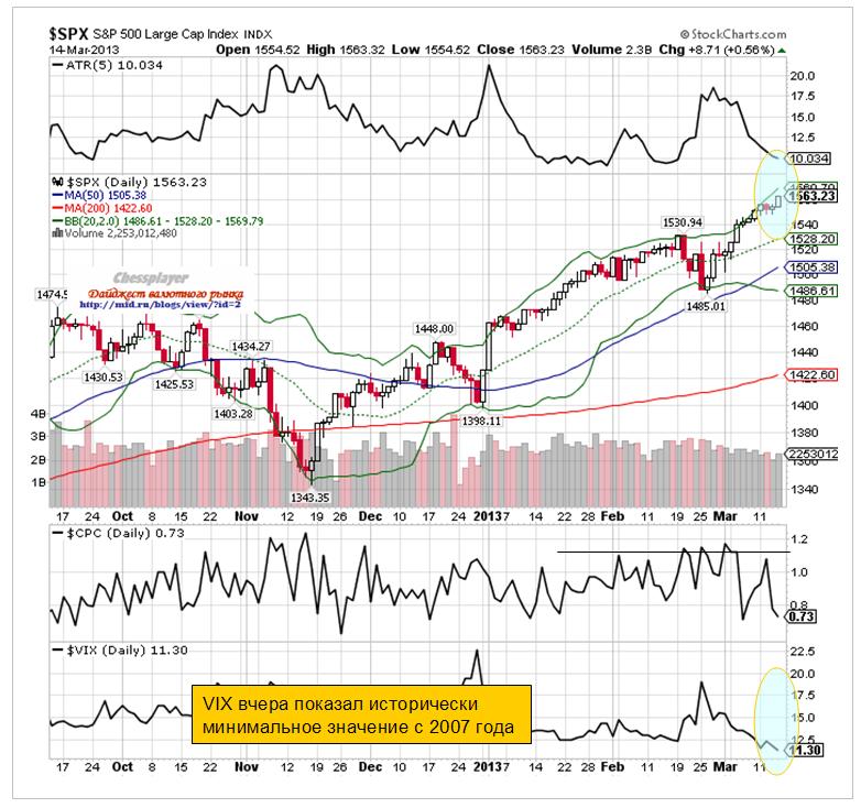 VIX=11,30. В течение дня VIX был равен 11,05 – минимальное значение то ли с 2007, то ли с 2005 года. Медведи попрятались...