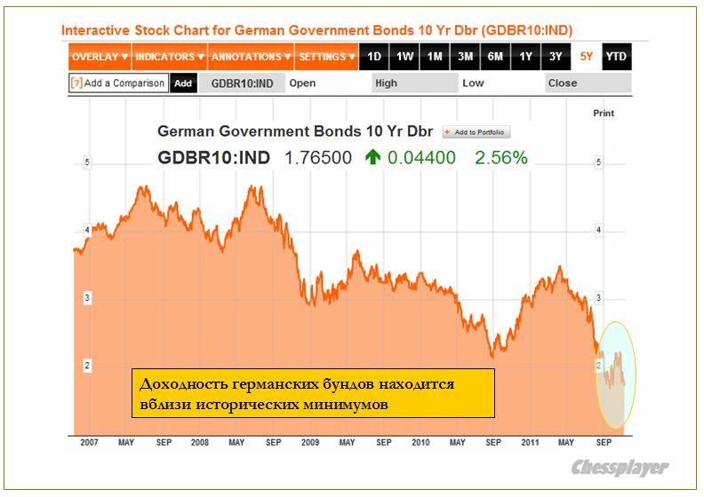 Между тем доходность германских бундов достигла близких к историческим минимальных значений. Такая уж это спокойная гавань?