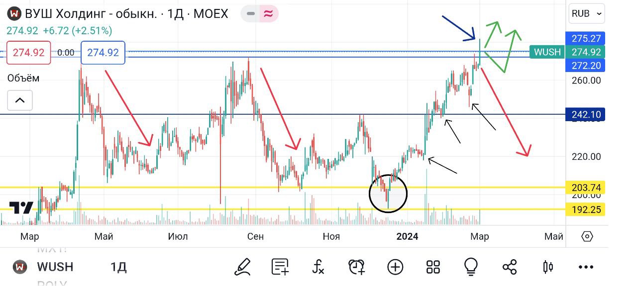 🥜Но есть позиция с целями 300-350р. И ожидаю больше или выход вверх с текущих или через очередной небольшой откат. Ситуация напоминает техническую картину Озона. Напомню, что он вышел вверх из канала через откат.