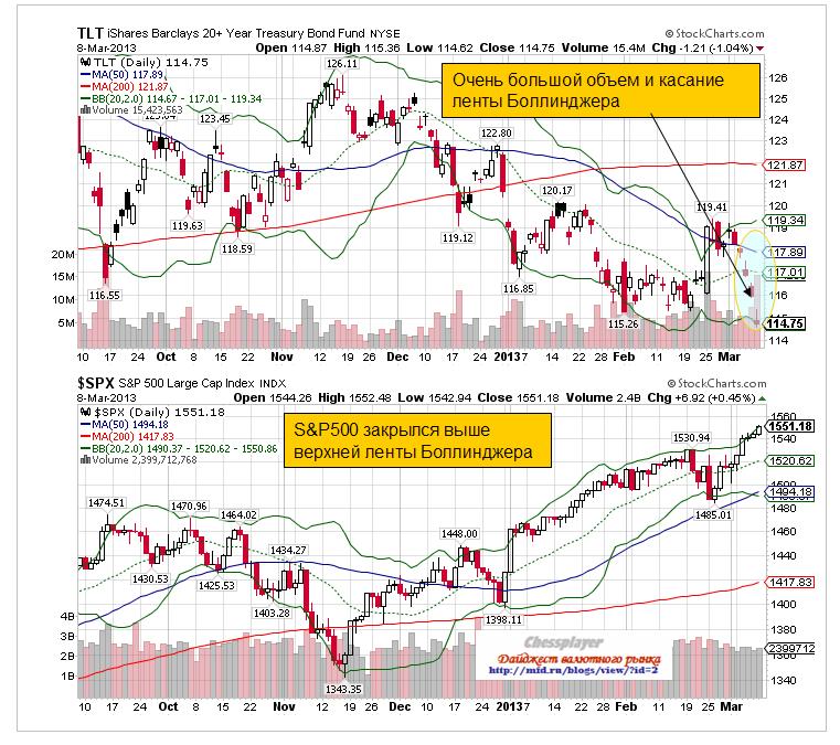 Главная причина роста американского фондового рынка Я часто задаюсь вопросом: почему, несмотря на непрерывный уход инвесторов из фондов, инвестирующих в акции, те продолжают расти и расти? Почему этот рост идет столь идеально, что даже выглядит несколько искусственным? Почему рост акций идет вопреки укреплению доллара? Почему год назад американский рынок негативно реагировал на позитивные экономические данные (это подразумевало меньше QE), а сейчас он одинаково позитивно реагирует как на хорошие, так и на плохие данные? Ответ на эти вопросы следующий: BUYBACK BUYBACK – обратный выкуп акций (выкуп американскими корпорациями собственных акций). Очень давно, 29 января 2011 года, мне приходилось об этом писать. За счет чего будут расти акции, если QE3 не будет И вот, репатриация прибылей идет полным ходом и питает необходимым топливом рост американского рынка акций. Ticker Sense пишет: В феврале был установлен исторический рекорд по выкупу американскими корпорациями собственных акций. В феврале на выкуп акций было направлено 117,8 млрд. долларов, что на 103% больше, чем годом раньше.  Февралю, правда, предшествовал достаточно слабый январь, и не самая удачная вторая половина 2012 года. А вот как выглядел список компаний, направивших наибольшие суммы на выкуп акций.  Следует отметить, что у трех компаний, возглавляющих этот список, большой объем выкупа акций сопровождался значительным ростом дивидендов. Для нас имеет большое значение, какие мотивы стояли за выкупом акций. Это важно, чтобы оценить, продолжится ли эта тенденция в будущем. Об этом пойдет речь в следующей статье.