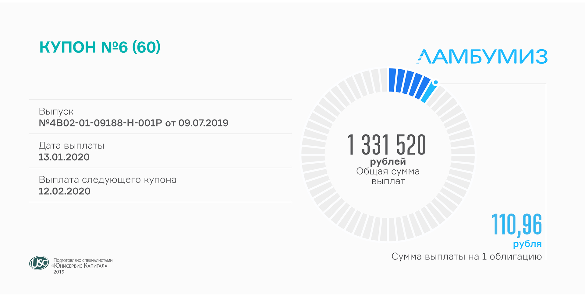 Общий размер выплат превышает 1,3 млн рублей. За одну облигацию владельцам начисляется по 110,96 рубля раз в месяц. Ставка купона — 13,5% годовых.