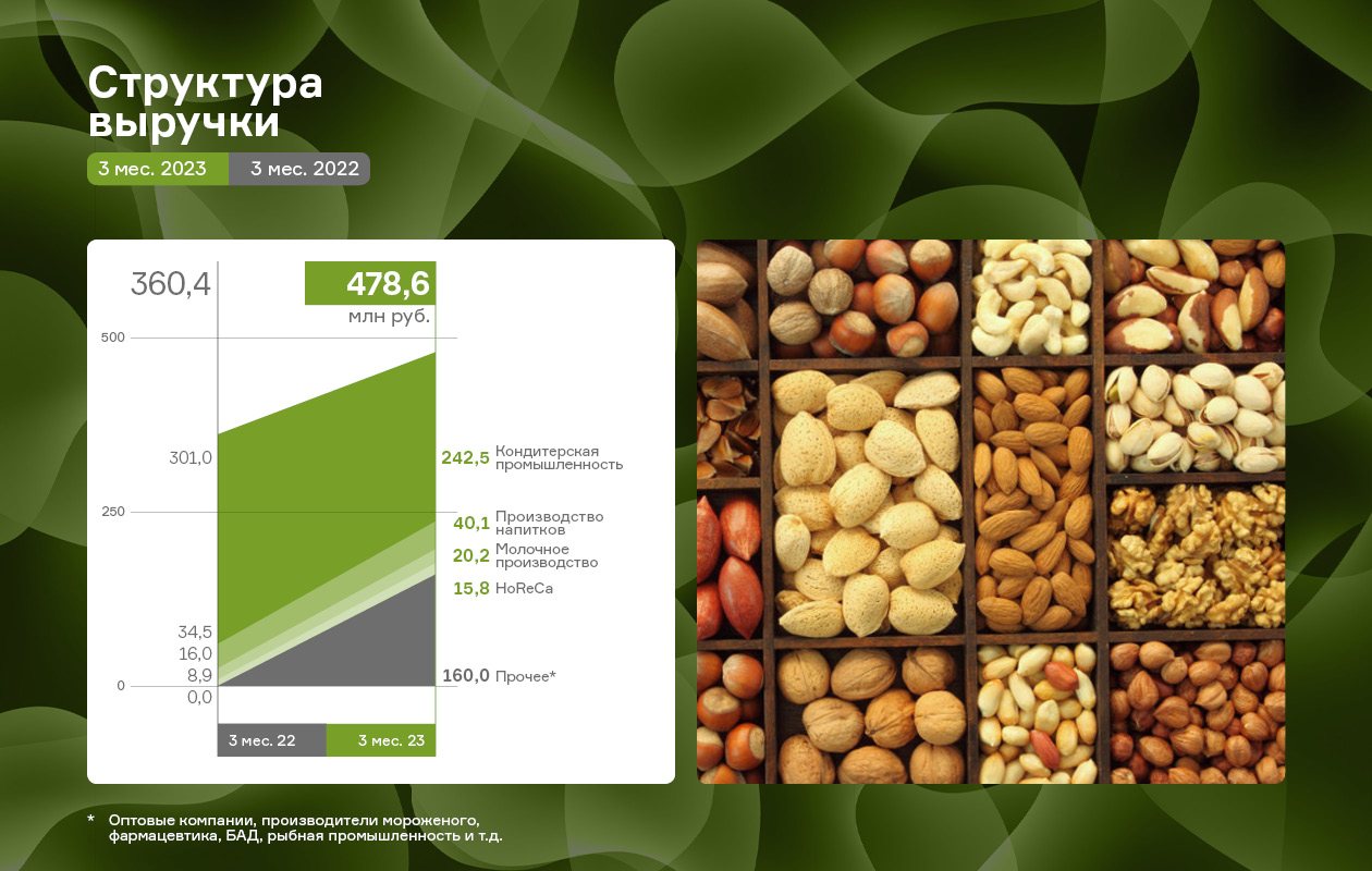За 3 мес. 2023 года у группы компаний более 900 клиентов: ООО «СЕЛЛ-Сервис» — более 500 клиентов и ООО «СЕЛЛ-Сервис Хорека» — порядка 400 клиентов. Наибольшую долю в структуре выручки занимают предприятия кондитерской промышленности — 51%.