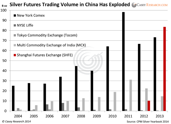 При устойчивом спросе на серебро доля в мировом богатстве всего 0,01%. Это большой потенциал роста особенно на фоне такой массы влитых денег. 7. Азия любит серебро Это видно по объемам торгов серебром.
