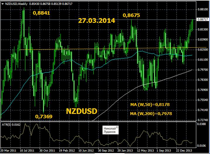 Только что пара NZDUSD превысила максимум прошлого года, равный 0,8675, установленный 11 апреля 2013 года.