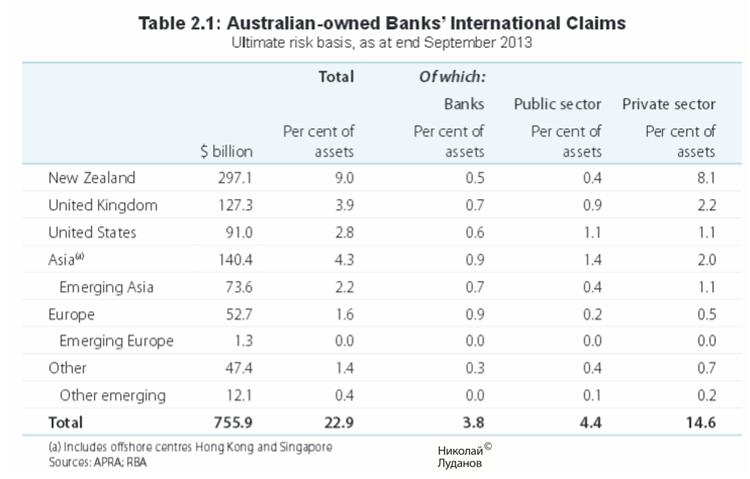 Из этой таблицы видно, сколь велики активы австралийских банков в Новой Зеландии.