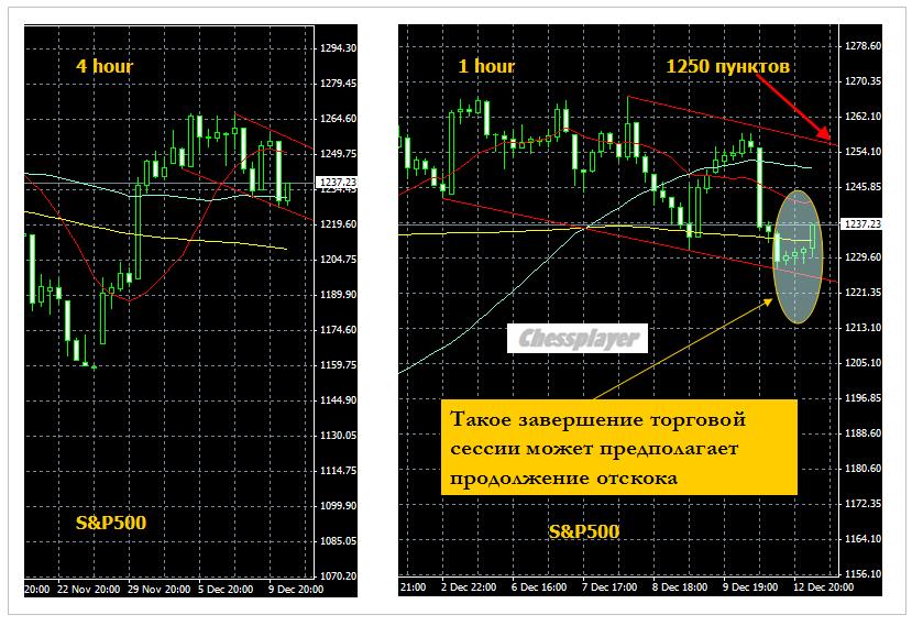 3. С технической точки зрения индекс S&P500 начал формирование канала (см рис). А если так, то мы увидим сегодня завтра отскок в район 1250 пунктов по индексу S&P500. Если пройти еще немного выше, то будет закрыт вчерашний гэп.