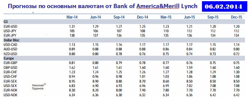 Прогнозы по основным валютам от Bank of America&Merill Lynch выходят достаточно регулярно и достаточно часто. Пока я не могу сказать ничего определенного об их качестве.