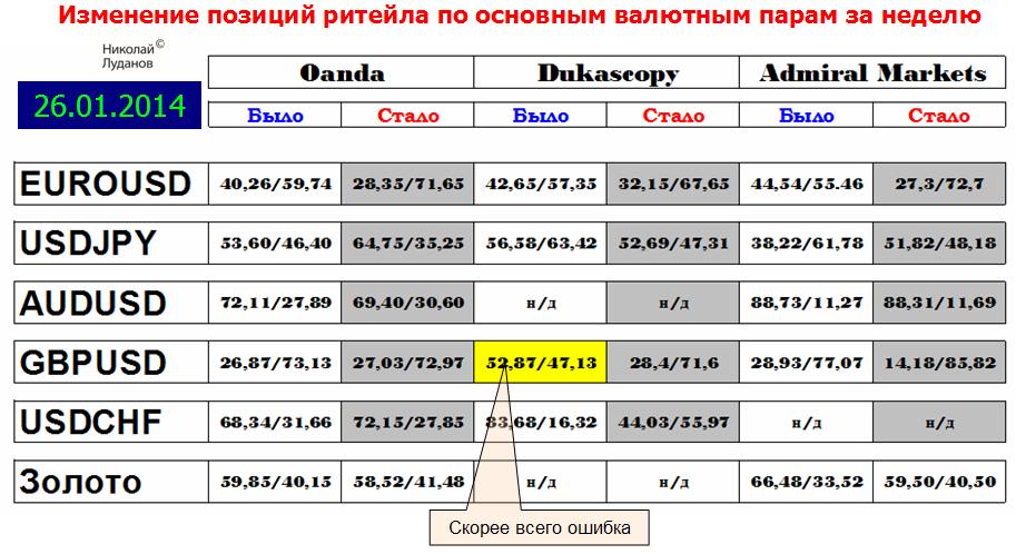 На следующем рисунке представлено изменение позиций ритейла по основным валютным парам за неделю.