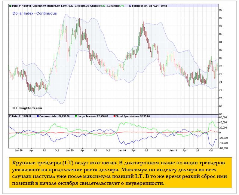 Крупные трейдеры здесь, как правило, занимают короткие позиции, а коммерческие трейдеры длинные.