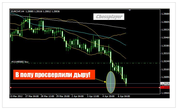 Прошлая неделя показала, что в полу (floor), олицетворяющем привязку CHF к EURO, образовались не просто трещины. Какие-то банки-озорники просверлили в нем дыру, в которую посыпались ордера на продажу. Это безобразие, правда, длилось всего пару минут, после чего «сторожа» пола ее зацементировали.