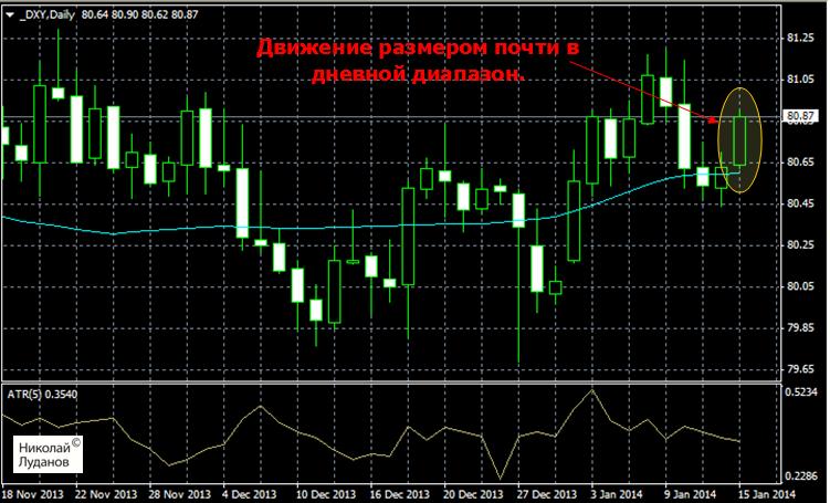 Достаточно странно видеть такую большую дневную свечу в индексе доллара, почти размером в дневной диапазон, в 9.30 утра по Москве.