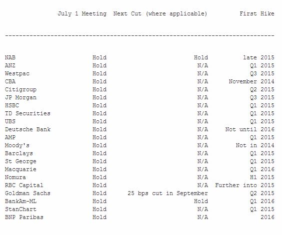 Из 21 экономиста, опрошенного агентством MNI, только один ожидает понижения ставки RBA (Goldman Sachs), а все остальные считают, что следующее изменение ставки будет в сторону повышения.