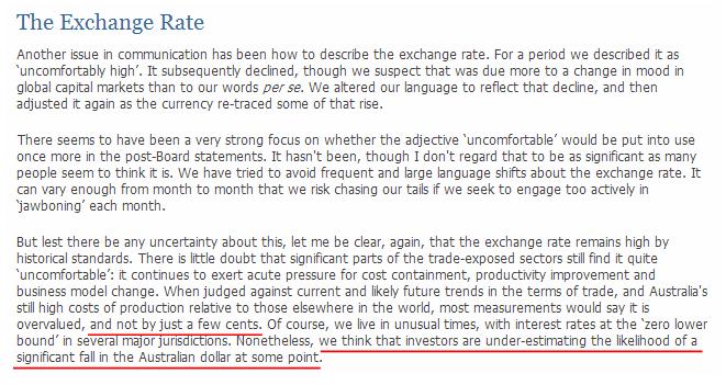 В сегодняшнем выступлении глава RBA Гленн Стивенс все-таки предпринял вербальную интервенцию против австралийского доллара.
