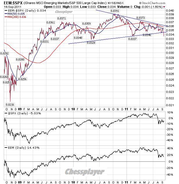 Так выглядит отношение индекса развивающихся рынков к индексу S&P500.