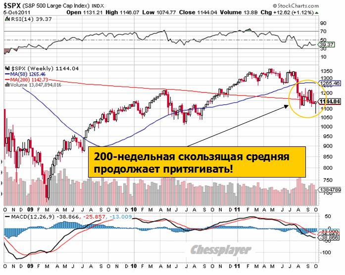 3 октября 2011 года индекс S&P500 закрылся 1099 пунктов, 10 октября – .... ? – Не дай бог!