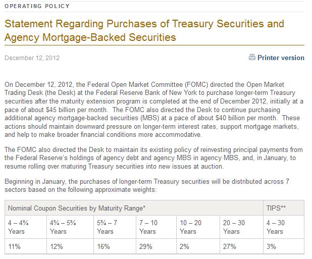 Вместо установления сроков для политики низких процентных ставок Комитет установил целевые уровни: 6,5% - уровень безработицы, 2,5% - уровень инфляции.