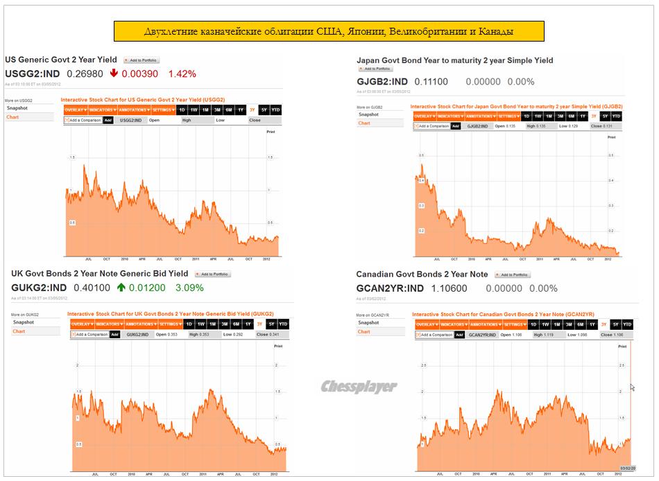 Внизу на рисунке для сравнения показана доходность 2-year облигаций США, Японии, Великобритании и Канады.