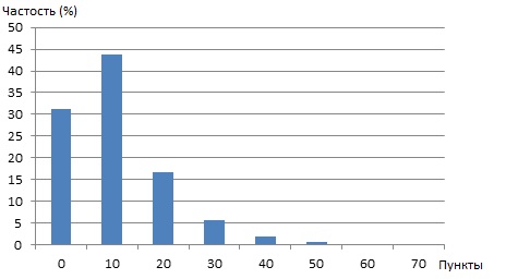 В столбце «Пункты» отражены все возможные изменения цены актива через 3 секунды, которые наблюдались в течение рассматриваемого торгового дня. В столбце «Частость» демонстрируется в относительных величинах многократность повторения того или иного значения пунктных изменений.
