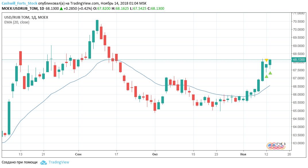 14 ноября 2018 года планируется работа от лонга в направлении среднесрочного восходящего движения. Набор позиции и фиксация прибыли по заявкам согласно торговому плану.