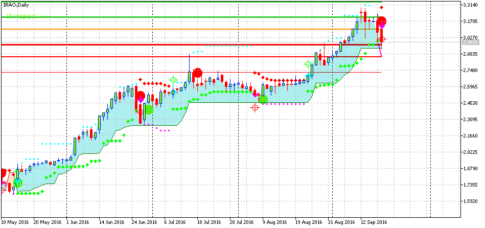 По некоторым акциям текущая картина сигнализирует о том, что восходящий тренд по ним может быть сломлен при наступлении определенных условий. На данный момент есть смысл обратить внимание на следующие акции, которые среднесрочно могут откорректироваться.
