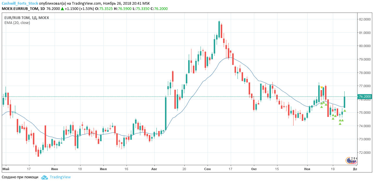 EURRUB_TOM — валютная секция Московской биржи. Торговый план на 27 ноября 2018 года.