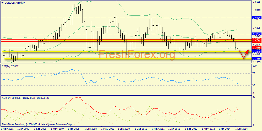 Месячный график: впереди у евро две поддержки - 1.2370 и 1.1858. И можно сказать, что медведи настроены решительно на вторую из них.