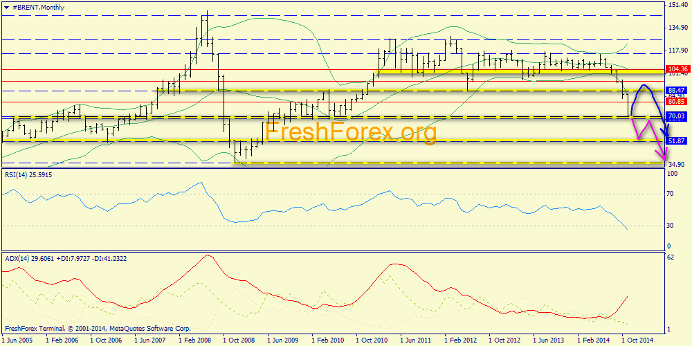 Месячный график: продолжается технически обоснованное падение нефти. ADX настроен на брутальное продолжение банкета.