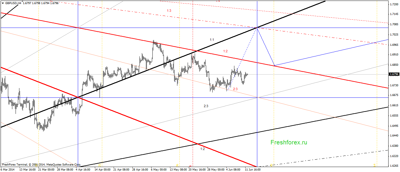 GBPUSD Н4. Цель 1.6871. Рост с текущих уровней. При пробое угла 1:2, цель угол 1:1.