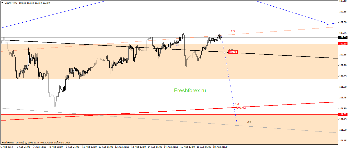 USDJPY Н1. Снижение с текущих уровней к углу 2:3 на уровне 101.36.