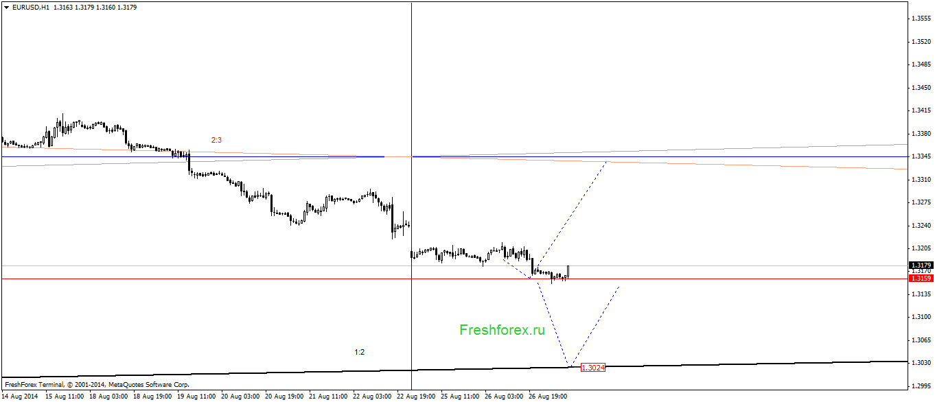 EURUSD Н1. Следующая цель угол 1:2 на уровне 1.3014.