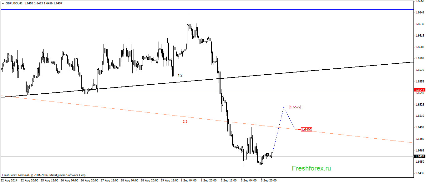 GBPUSD Н1. Повторный тест угла 2:3 с последующим его пробоем и тестом. Цели 1.6500, 1.6522.