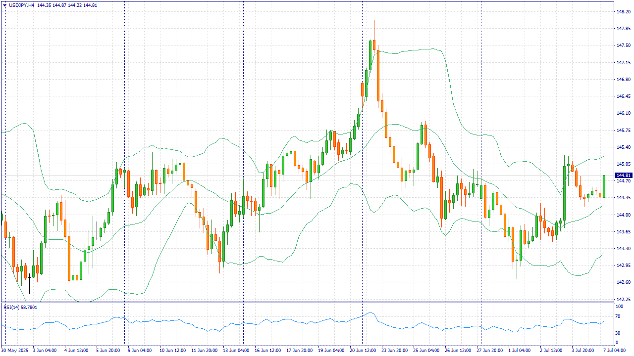 Японская иена (JPY) снижается по отношению к американскому доллару в начале новой недели после публикации слабых внутренних данных. Реальные заработные платы в Японии в мае снизились пятый месяц подряд, причем темпы снижения были самыми быстрыми за почти два года на фоне сохраняющегося инфляционного давления. К этому добавляются надвигающиеся тарифы США на японский экспорт, которые могут снизить прибыль компаний и потенциально подорвать будущий рост заработных плат. Такая перспектива может осложнить график нормализации денежно-кредитной политики Банка Японии и стать препятствием для роста курса иены.