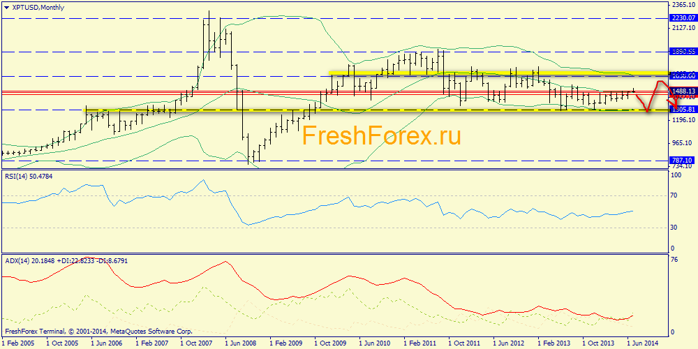 Месячный график: платина продолжает находиться в боковом диапазоне 1305.81-1630.89