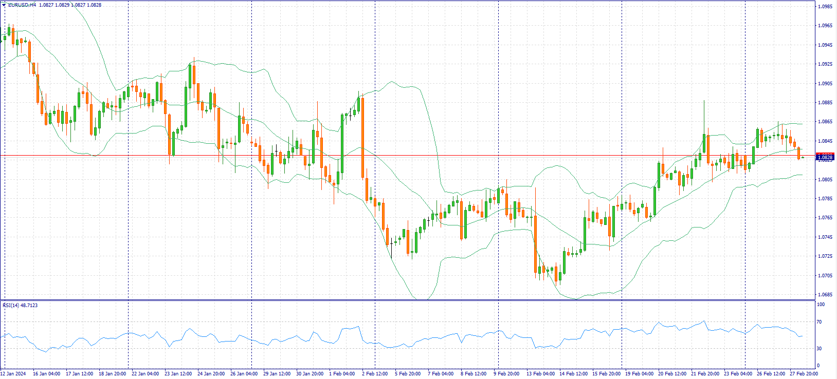 Пара EUR/USD продолжает терять вблизи отметки 1,0840 в ходе азиатской сессии в среду, так как трейдеры занимают осторожную позицию в преддверии выхода индикатора экономических настроений в Еврозоне за февраль и предварительных данных по валовому внутреннему продукту в годовом исчислении (4 квартал) из США, запланированных к публикации позднее в этот день.