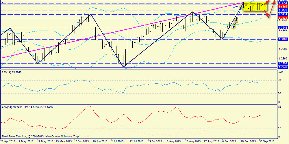 Альтернатива: в случае неспособности уйти выше 1.3645 - ждем откат ниже 1.3462 (в район 1.3264).